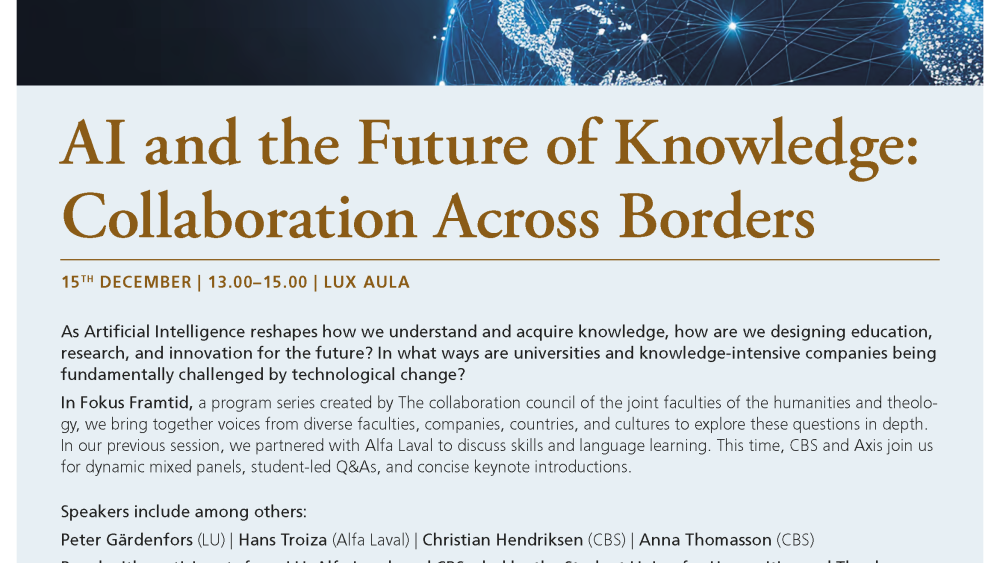 15TH DECEMBER | 13.00–15.00 | LUX AULA As Artificial Intelligence reshapes how we understand and acquire knowledge, how are we designing education, research, and …